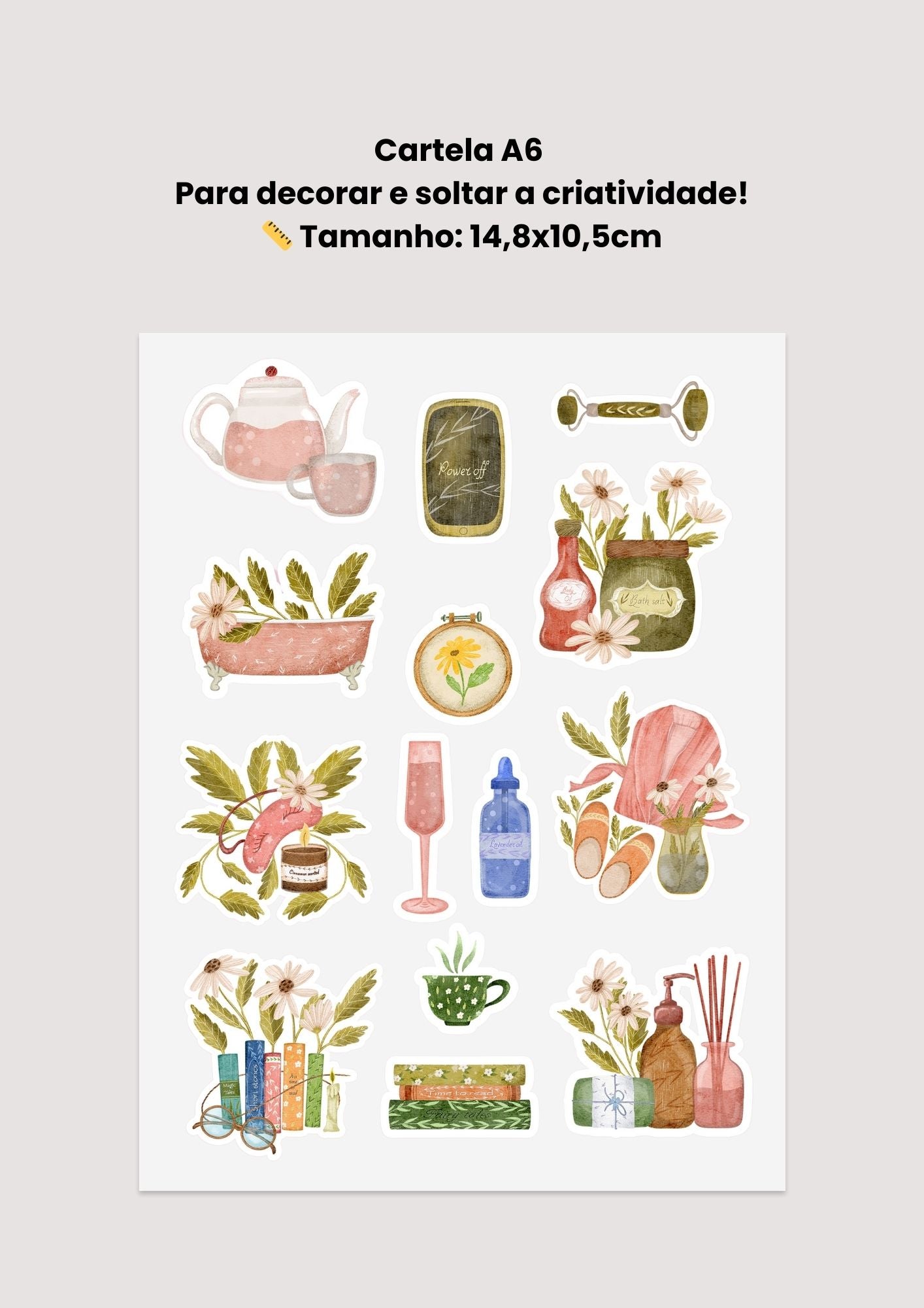 Cartelas de adesivos em tamanho maior, perfeitas para decorar e dar mais vida ao seu planejamento.