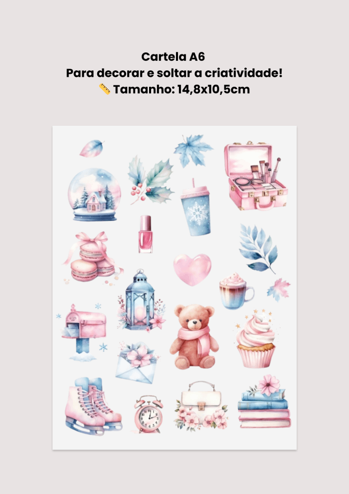 Cartelas de adesivos em tamanho maior, perfeitas para decorar e dar mais vida ao seu planejamento.