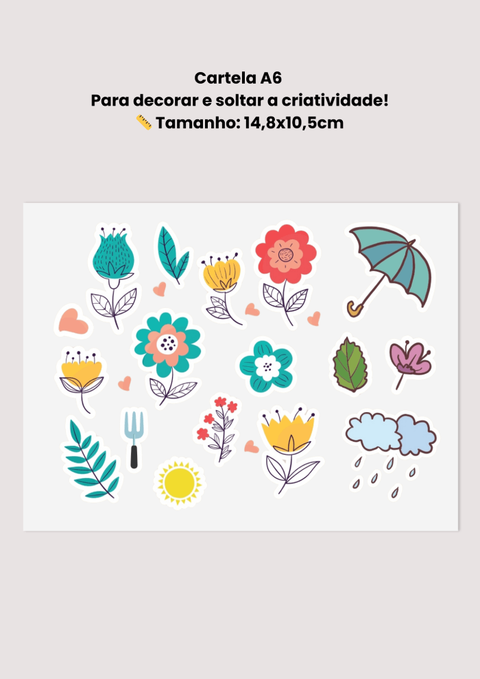 Cartelas de adesivos em tamanho maior, perfeitas para decorar e dar mais vida ao seu planejamento.