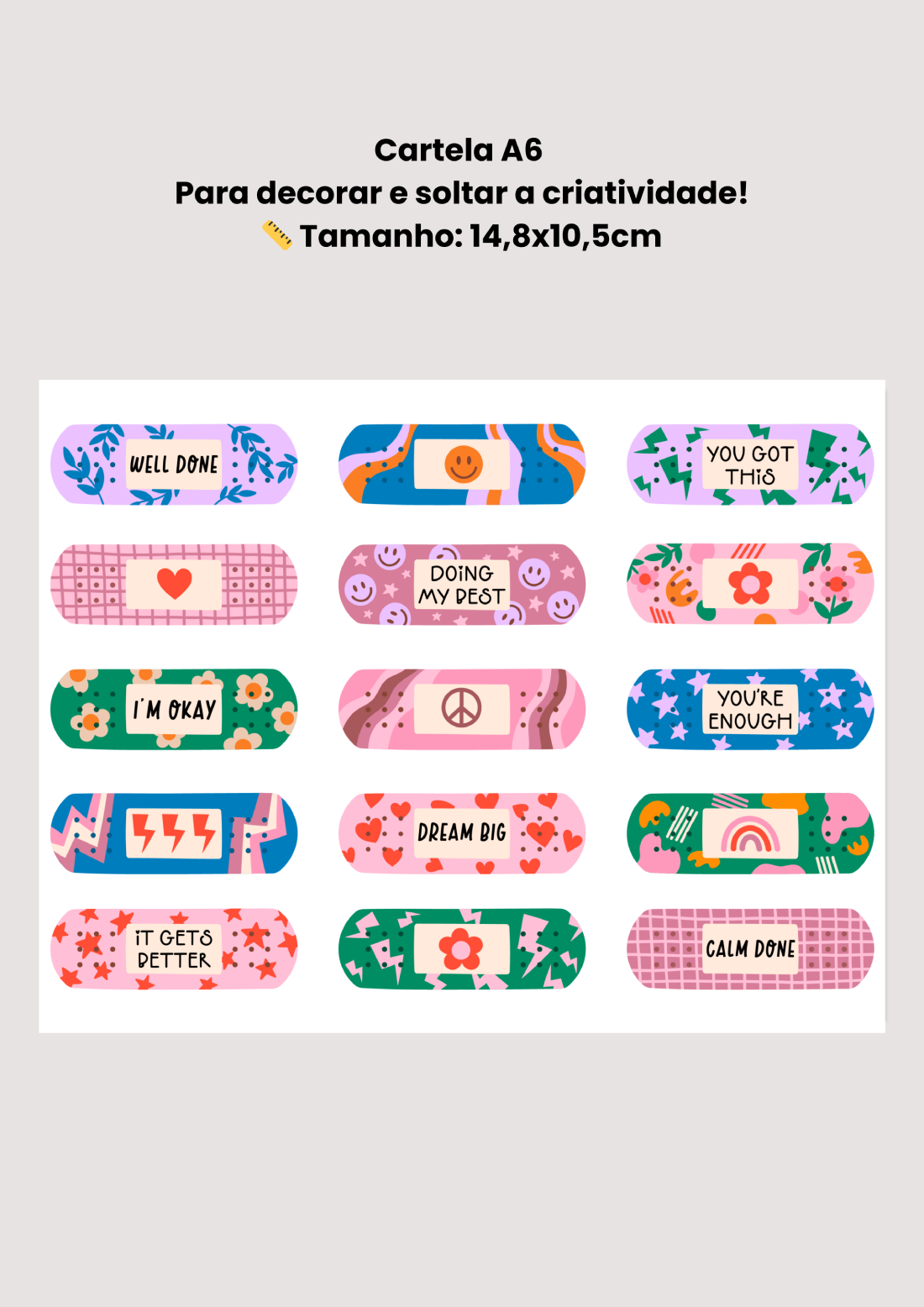 Cartelas de adesivos em tamanho maior, perfeitas para decorar e dar mais vida ao seu planejamento.