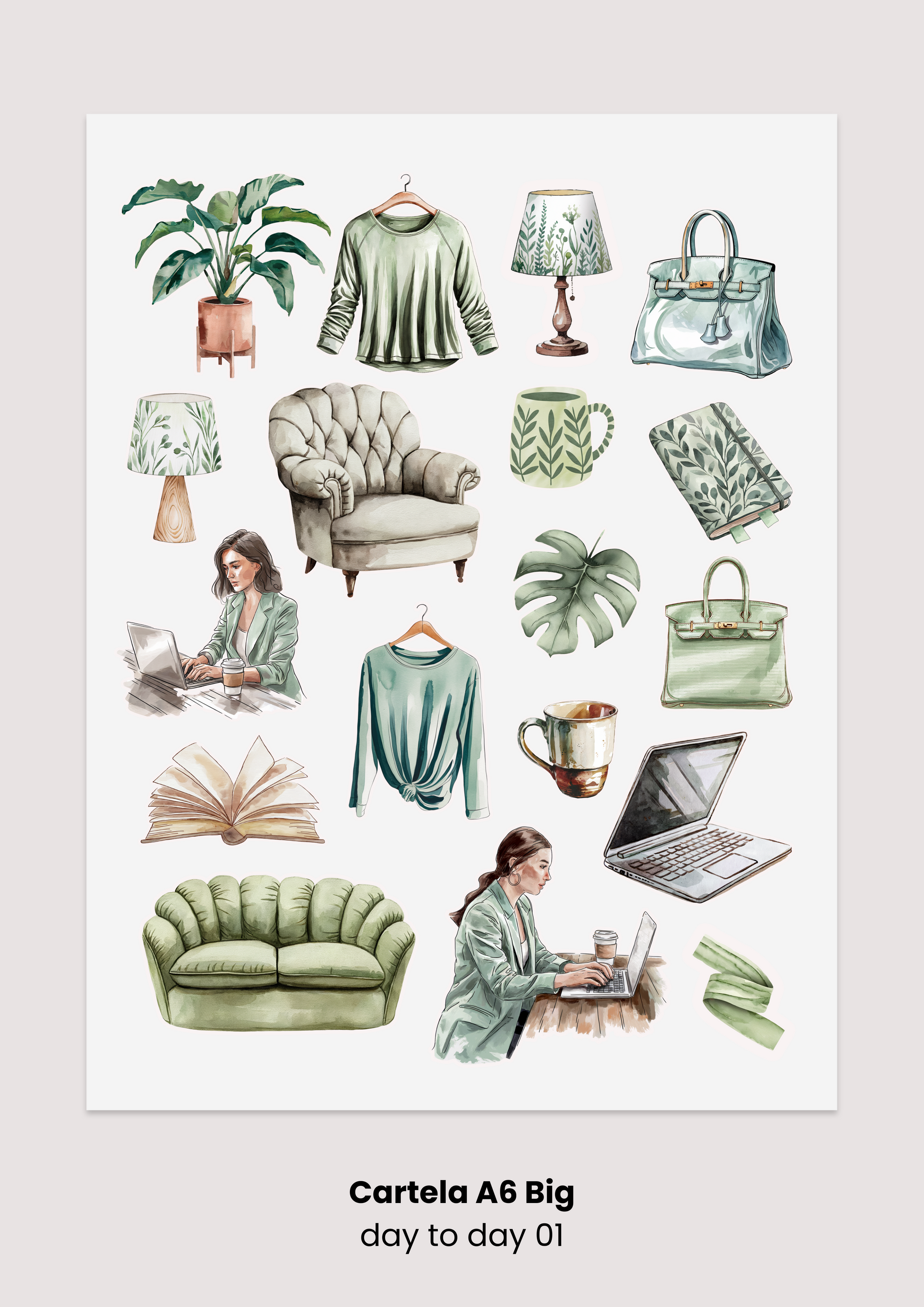 Cartelas de adesivos em tamanho maior, perfeitas para decorar e dar mais vida ao seu planejamento.