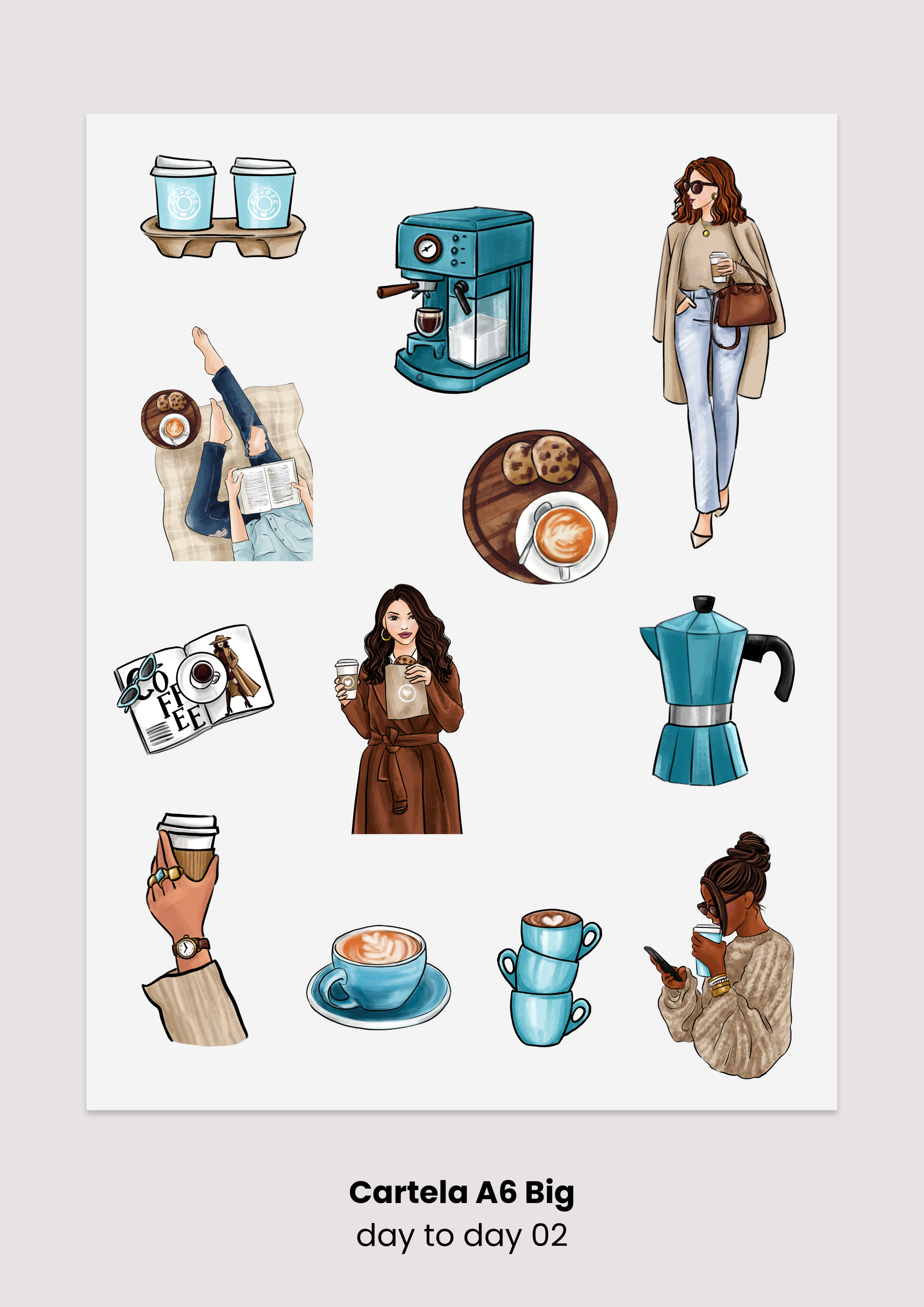 Cartelas de adesivos em tamanho maior, perfeitas para decorar e dar mais vida ao seu planejamento.