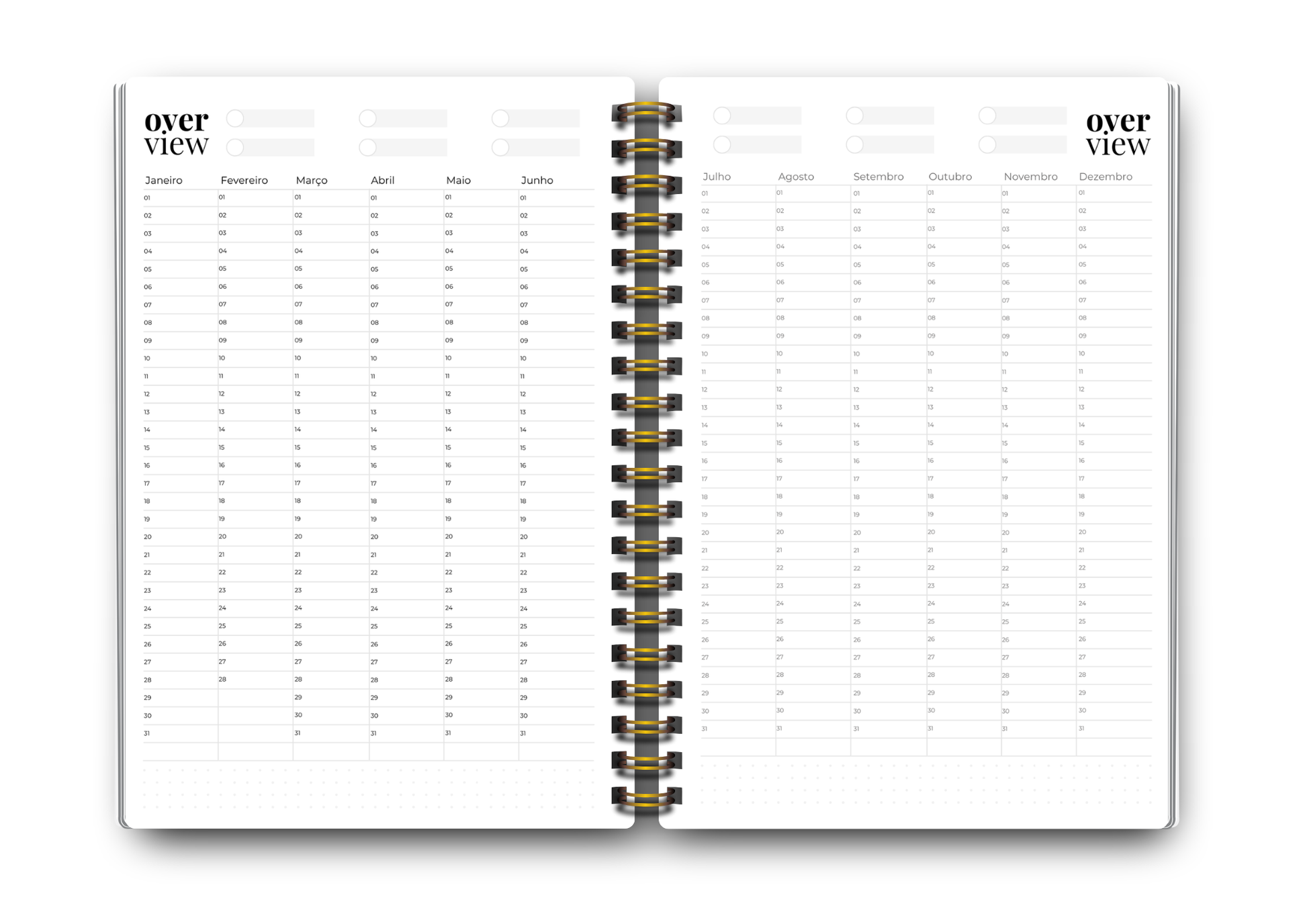 Miolo anual e organizado por meses